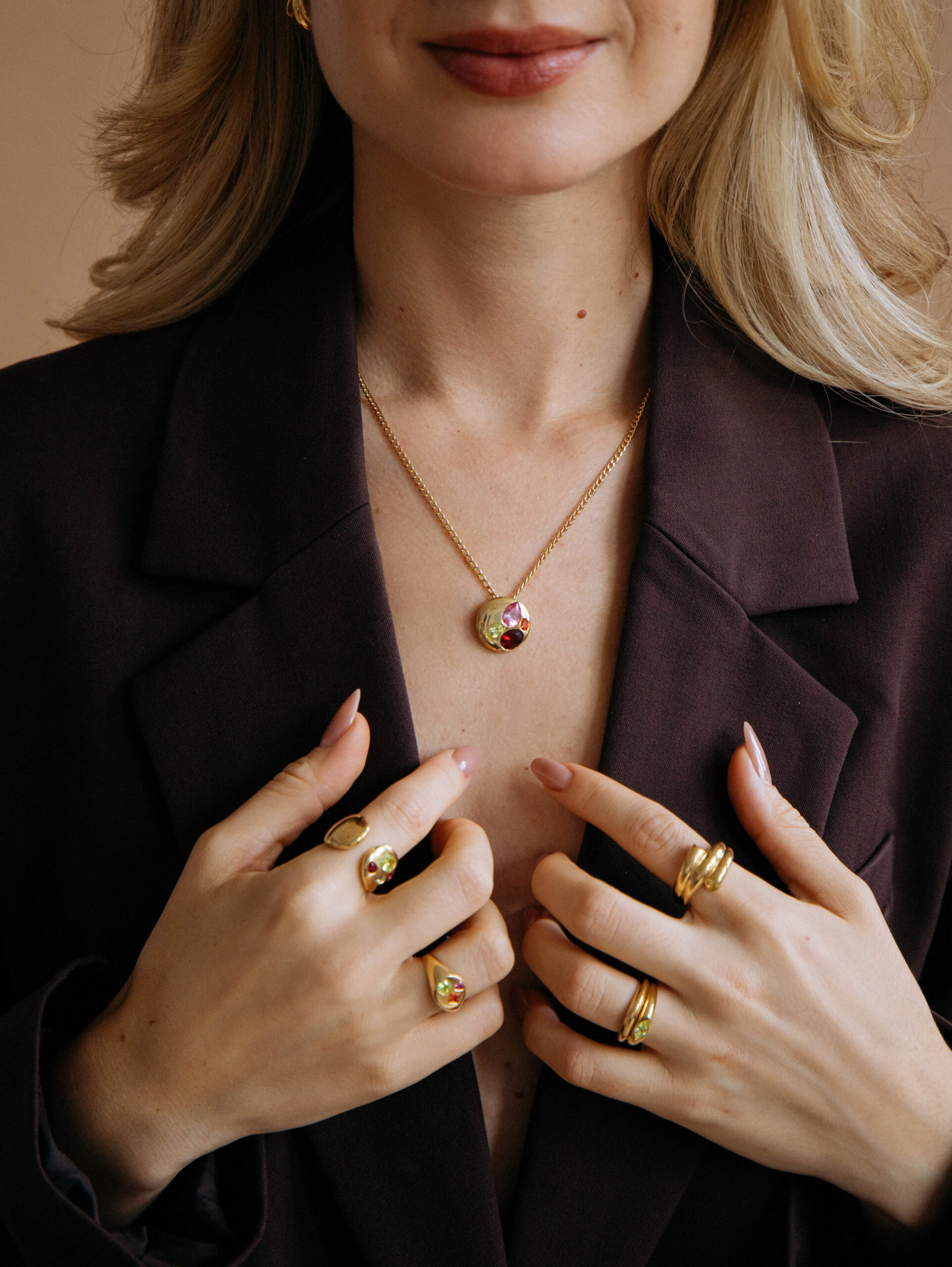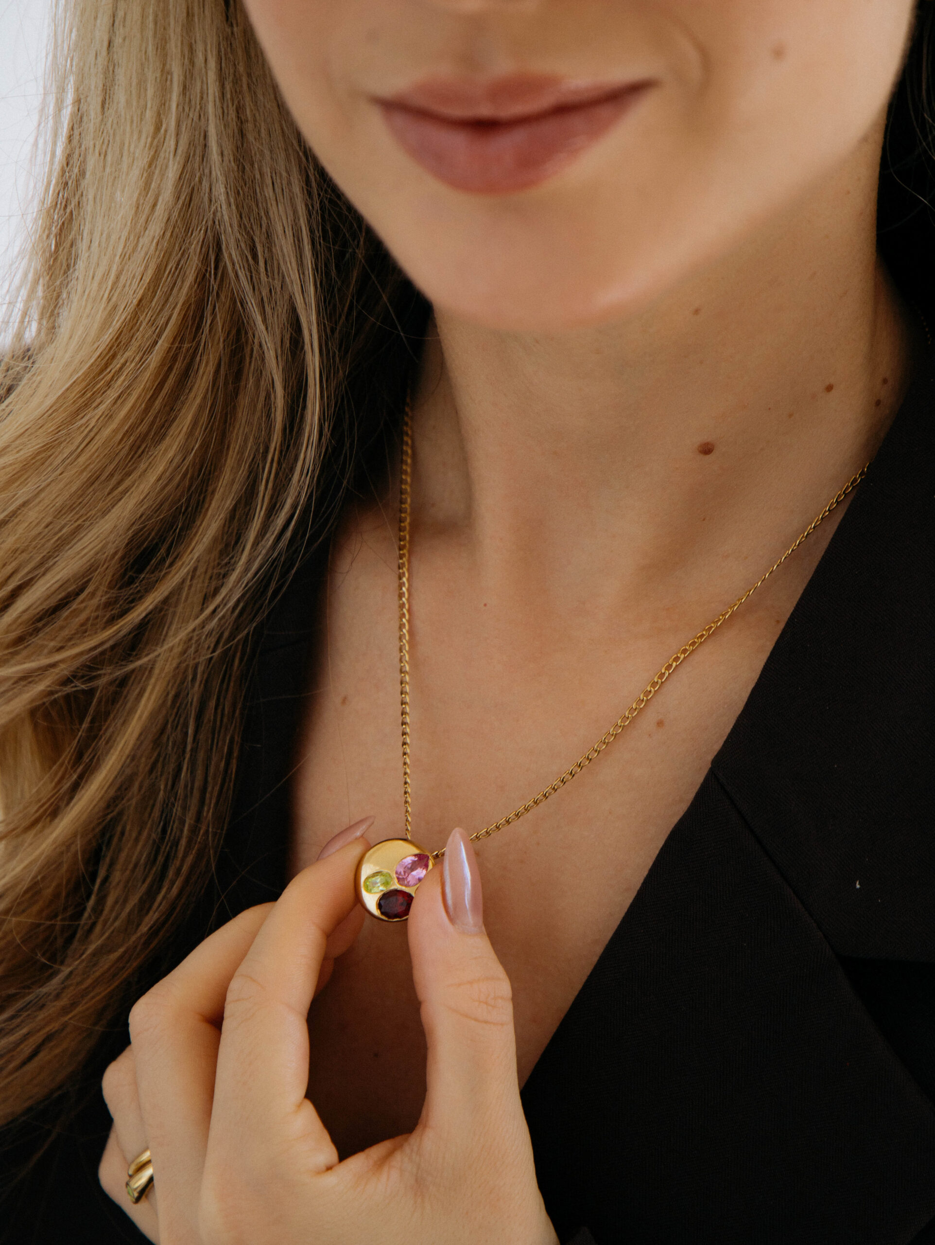 A színes kövek finom csillogása minden mozdulattal életre kel, miközben a minimalista design a kollekció többi darabjával tökéletesen kombinálható. Az Eszter nyaklánc a nőiesség, az öröm és a természet szeretetének tökéletes kifejezése.